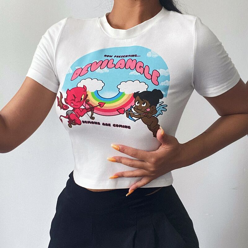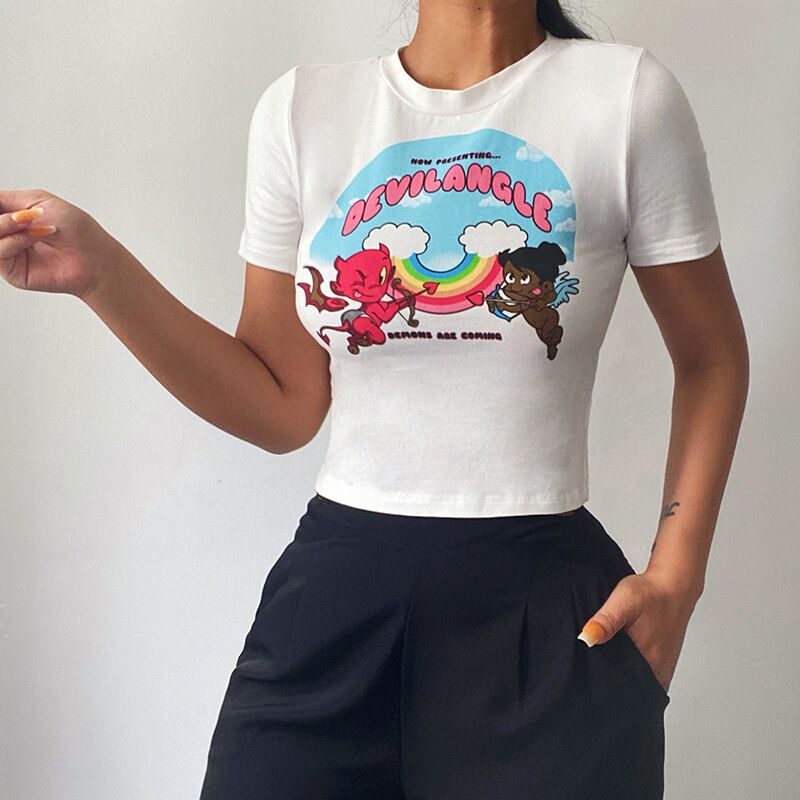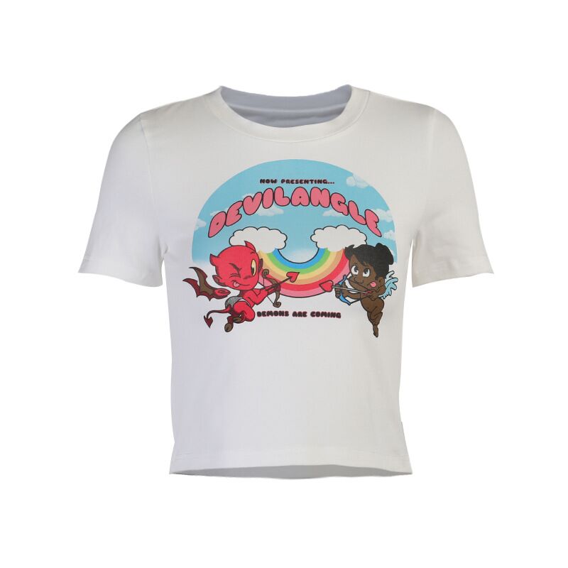 OEM ODM Screen Print Crop Women T Shirt -White