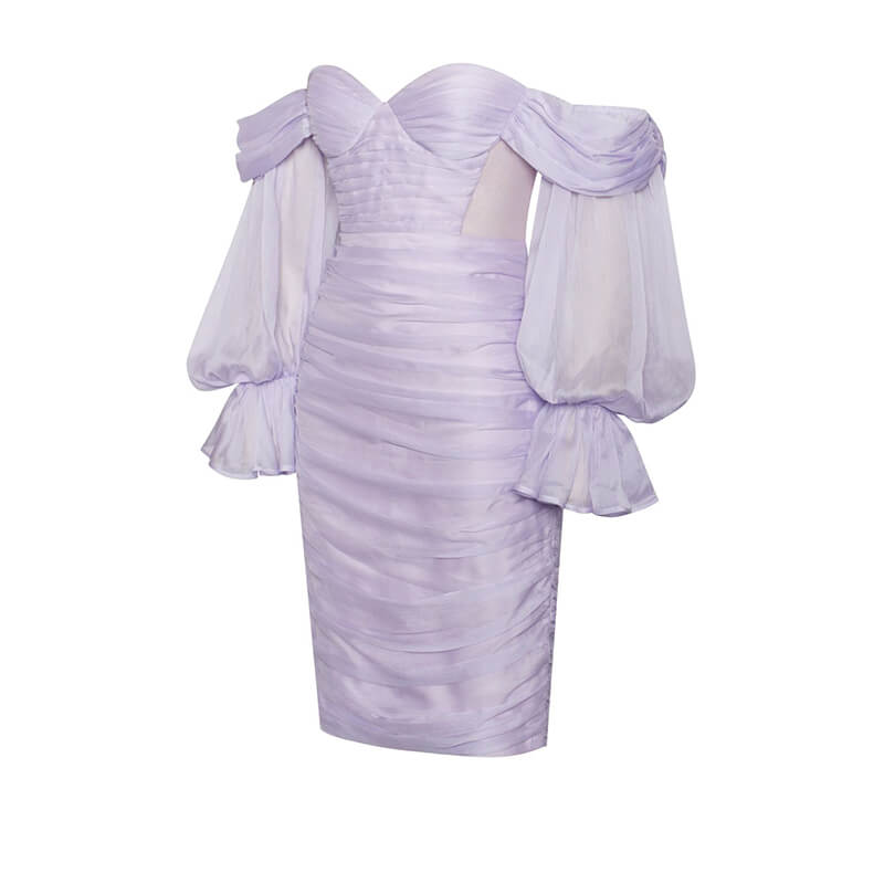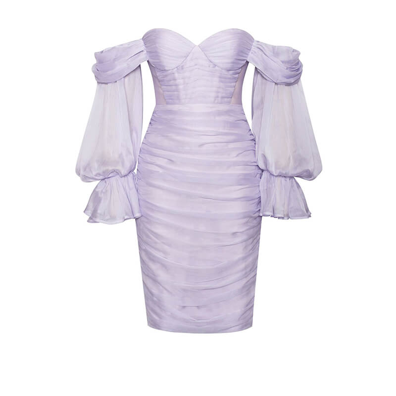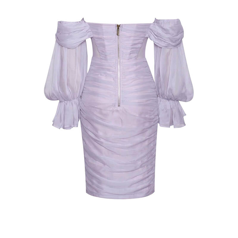Puff Sleeve Off Shoulder Ruched Mesh Bodycon Party Mini Dress