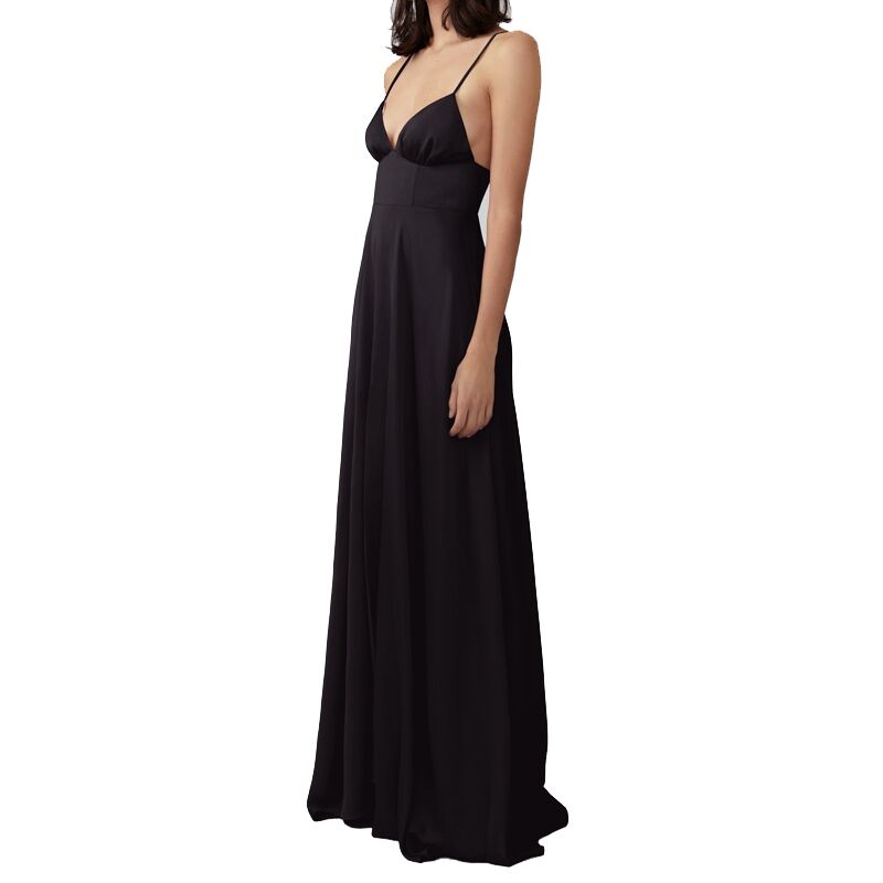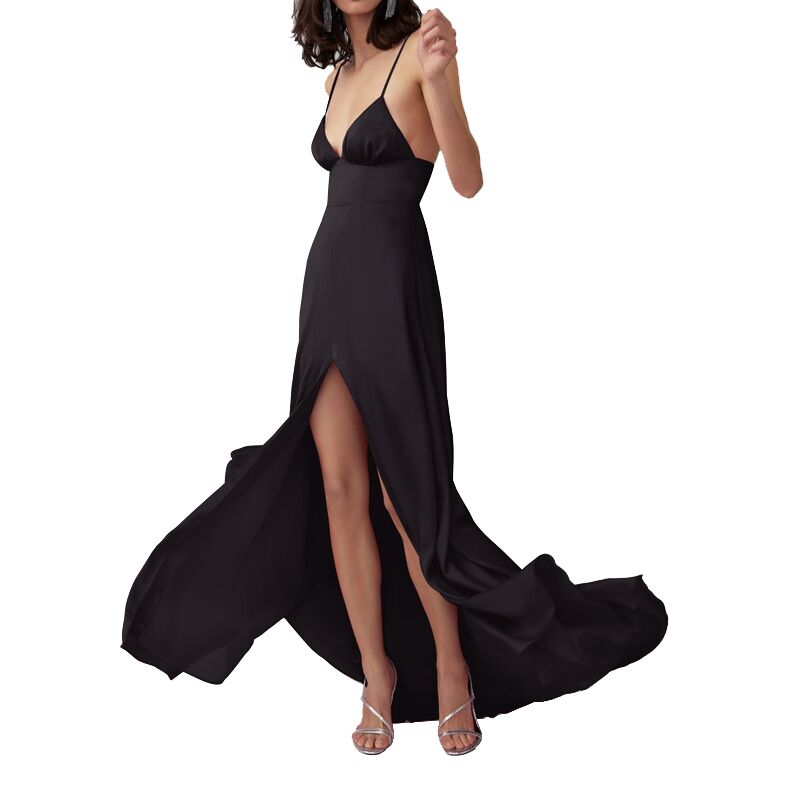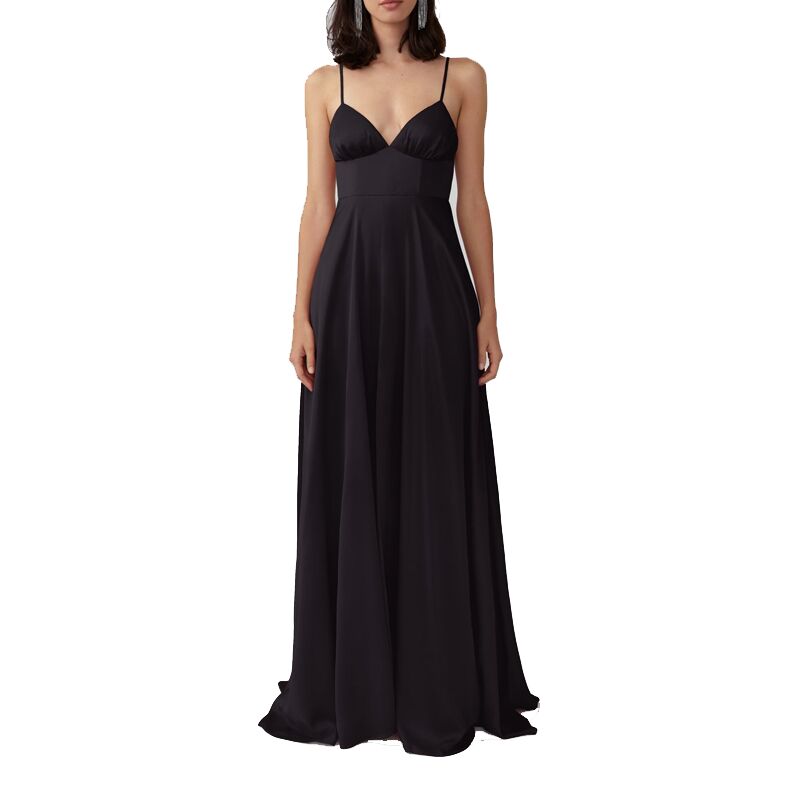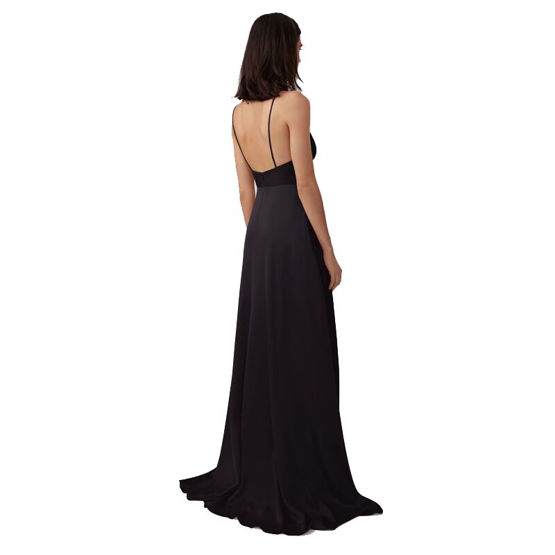 Satin Party Evening Maxi Dress-Black
