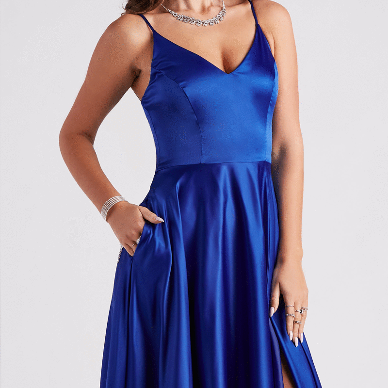 Spaghetti Straps Satin Split Long Prom Dress